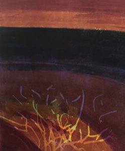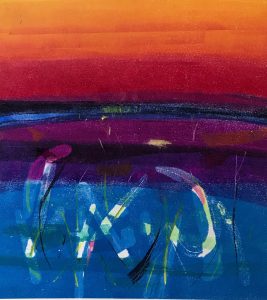 Cath works in a variety of materials with an emphasis on oil and water-based media on paper. These she uses in unusual ways, in blocks of colour to build an image based on the rhythms of dance and music she find in the landscape. Increasingly she is using combinations of materials: collograph, gouache and collage for example, to attain the textures she sees and feels. The series of monotypes shown here are a part of a new series begun at the end of 2018. Cath has exhibited widely including at Cupola Gallery of Contemporary Art, Sheffield, Chatsworth House Derbyshire and Alpha Art, Edinburgh.