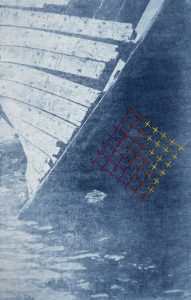 Eleanor’s most recent work uses photographs taken by her father, who died in 2022, as the basis for photopolymer prints on cotton muslin. Taken in the landscape around the tidal basin of Loch Fleet in Scotland, the photographs include a boat wreck and other decaying infrastructure. The process of working with these images and translating them into this form has been an act of obligation – to recognise and capture for posterity a sense of her father outside of his familial role. But there has also been catharsis in the process and a joyful recognition of shared focus and interests.