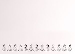 The work adopts the French poet Antonin Artaud’s language of “cruelty” to evoke her self-described “loss of tongue” from infancy. Placing fragments of her childhood alongside female figures derived from a vast range of sourced personal photographs, the work probes at the relationship between the language of autonomy and origin. There is an underlying fundamental connection between a confronted oppression and inequality. The prints challenge the aesthetic orthodoxies of religion, and the allegoric use of children to exploit their ‘innocence’.