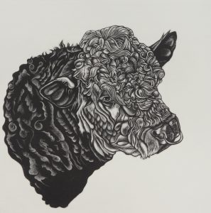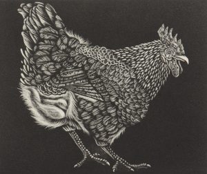 Consistently inspired by nature, sometimes with a hint of narrative and always founded upon my love of drawing, my work is handprinted at home on a traditional etching press – the old fashioned way. I love little details in nature – whether it be the curl of a bull’s forelocks, a dimple in a chicken’s comb or the simple forms of the centrepiece of a buttercup once the petals have fallen. I studied Illustration at Kingston University and it was here that I fell in love with printmaking: I was captivated by the smells, the touch and the rhythm of print. After having a family I have returned to what has always fulfilled me the most.