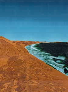 Saunders’s current artistic focus centres on the vibrancy of the natural world. Her encounters with nature remind her of the interconnectedness of all things, the boundless beauty that surrounds us, and the vastness of existence. She expresses these ideas through her artwork by playing with scale, incorporating strong shapes, and using vibrant colours with tonal contrasts. In an era marked by isolation and loneliness, her work serves as a reminder that, like nature, we are interconnected and expansive beings.