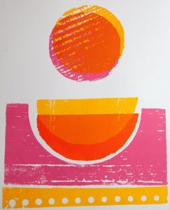 I am an arts educator based in the East Midlands. My background is photography, however I enjoy printmaking and graphic design. My work is a combination of traditional printmaking, mark making and digital processes. I have a playful, intuitive approach to making work and enjoy experimenting with colour, forms and textures to produce abstract compositions that explore shape and space.