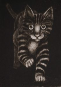 Marie enjoys going from an initial idea, to sketches to compose a picture and then moving on to paint, felt, sew or print it. She finds it very satisfying to see an idea come to fruition in a frame!. Her inspiration comes from in her surroundings, particularly the Derbyshire countryside and the small village which she lives in, near Ashby de la Zouch. A wide variety of countryside animals and plants influence her work. Marie is also a keen photographer and she finds that photography, printmaking, wet felt making, sewing and painting complement each other.